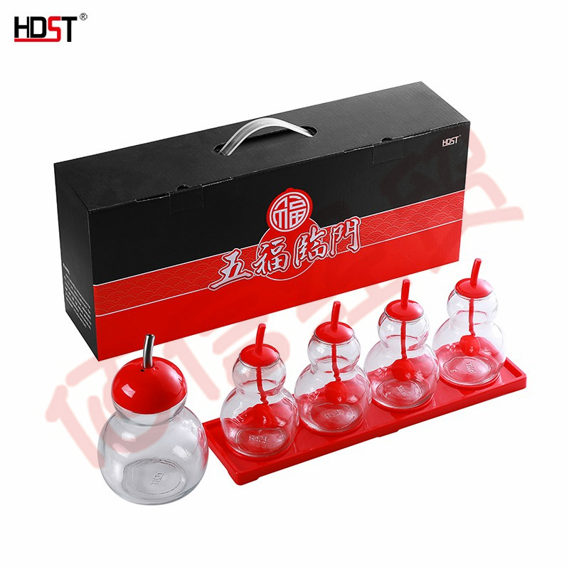 HDST/華典世通 五福臨門 廚房玻璃調(diào)味罐套裝5件套勺蓋一體油壺調(diào)料瓶鹽罐調(diào)味盒 福臨門2件組 WF-20111 自營(yíng)