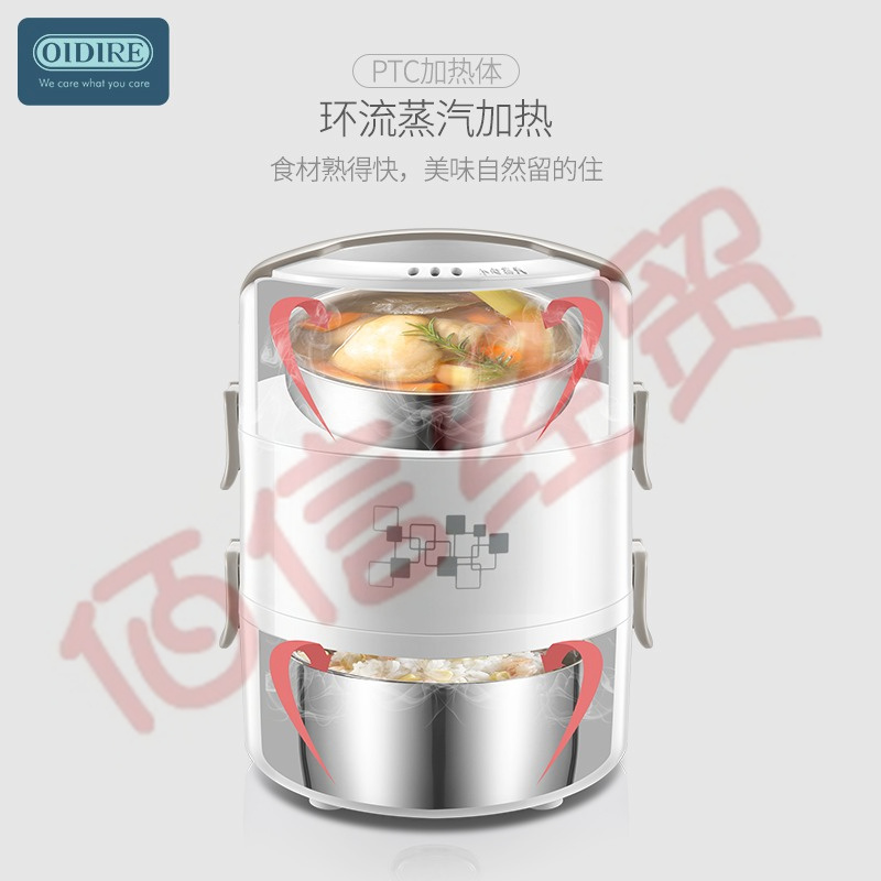 德國 OIDIRE 電熱飯盒 加熱飯盒三層不銹鋼內(nèi)膽插電蒸煮保溫上班族便攜熱飯器密封保鮮迷你飯煲 ODI-DFH11 精臻白 智能預(yù)約款 自營