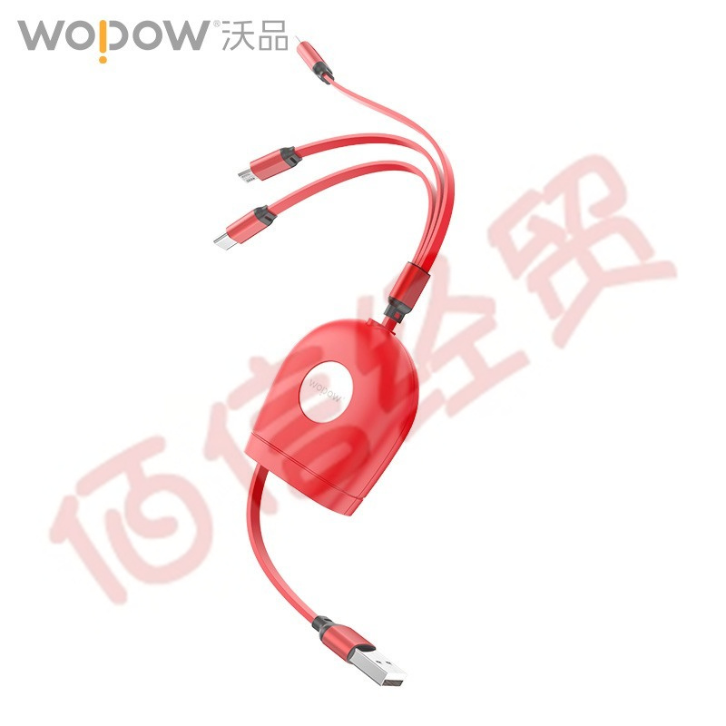 沃品 WOPOW LC009一拖三充電線可伸縮充電線快充線多合一適用于蘋果安卓通用線 紅色 1.2米 自營