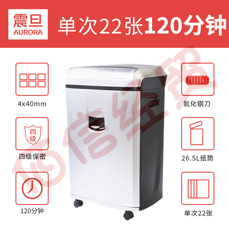 震旦AURORA 4級保密辦公商用碎紙機(jī)(單次22張 持續(xù)120分鐘 26.5L 可碎卡、光盤) AS2260CD 自營
