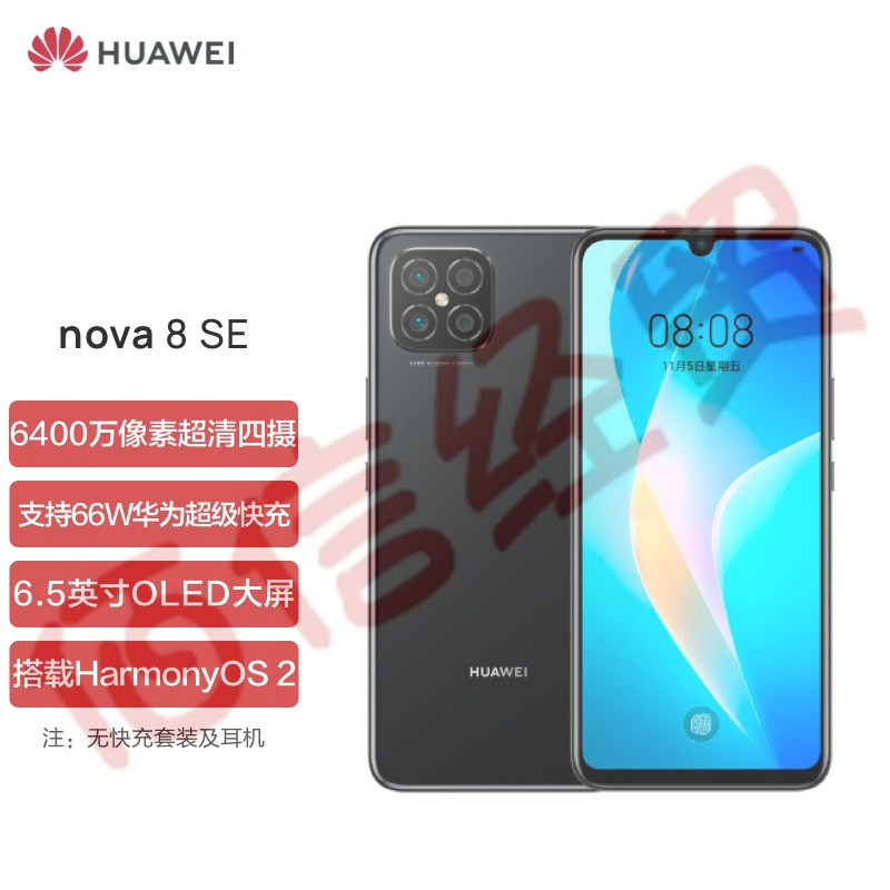 華為HUAWEI_nova_8_SE_6400萬高清四攝_支持66W超級快充_6.5英寸OLED大屏_8GB+128GB幻夜黑華為手機_標配無充 自營