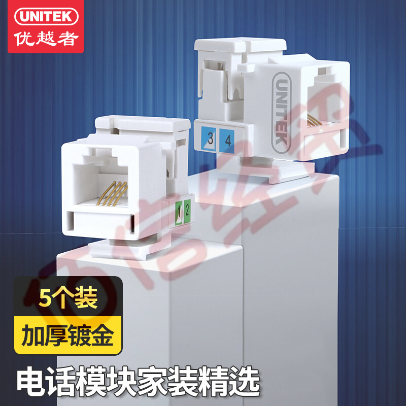 優(yōu)越者(UNITEK)電話語音模塊 50U鍍金工程4芯打線面板模塊 CAT3電話線通信插座 RJ11水晶頭連接器OT28WH 自營