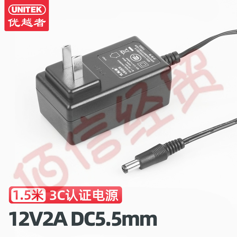 優(yōu)越者(UNITEK)12V2A電源適配器 DC5.5mm充電器 適用12V筆記本硬盤盒座 Y-P521BK 自營