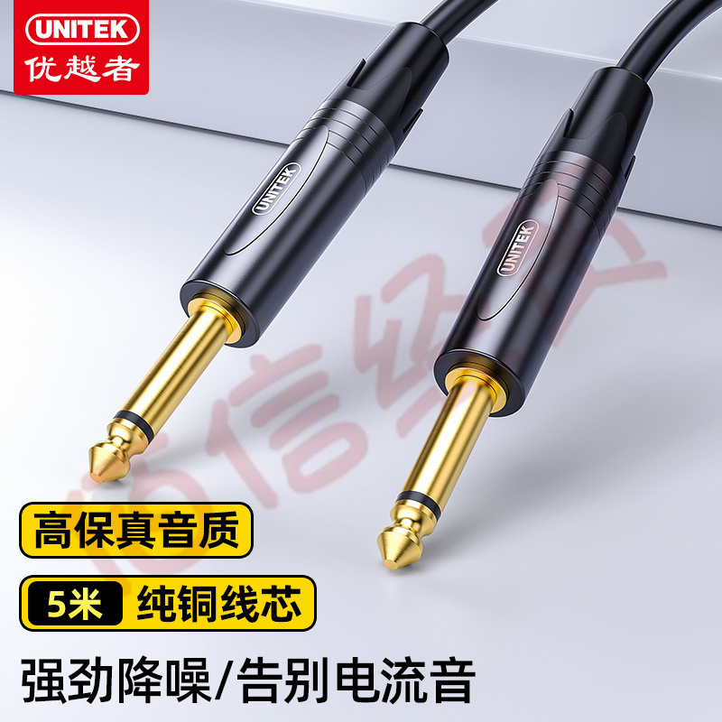 優(yōu)越者6.5mm音頻線 6.35大二芯公對公連接線對錄線 音箱功放麥克風電吉他電子琴鼓調音臺轉接線5米 C9042BK 自營