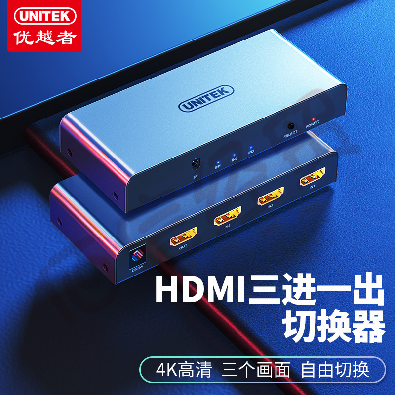 優(yōu)越者(UNITEK)HDMI切換器三進(jìn)一出 3進(jìn)1出4K高清視頻切屏器 筆記本電腦接電視投影儀共享顯示器 V133A 自營