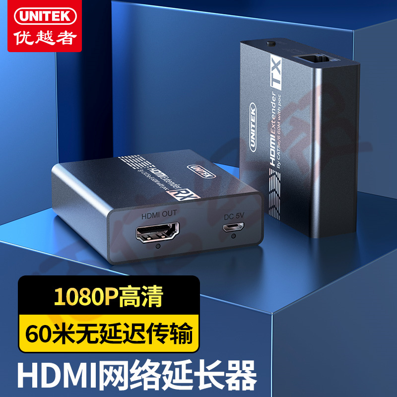 優(yōu)越者(UNITEK) HDMI延長器60米 hdmi轉(zhuǎn)RJ45網(wǎng)口轉(zhuǎn)換器 單網(wǎng)線網(wǎng)絡(luò)高清傳輸信號放大器發(fā)射器+接收器V145A 自營