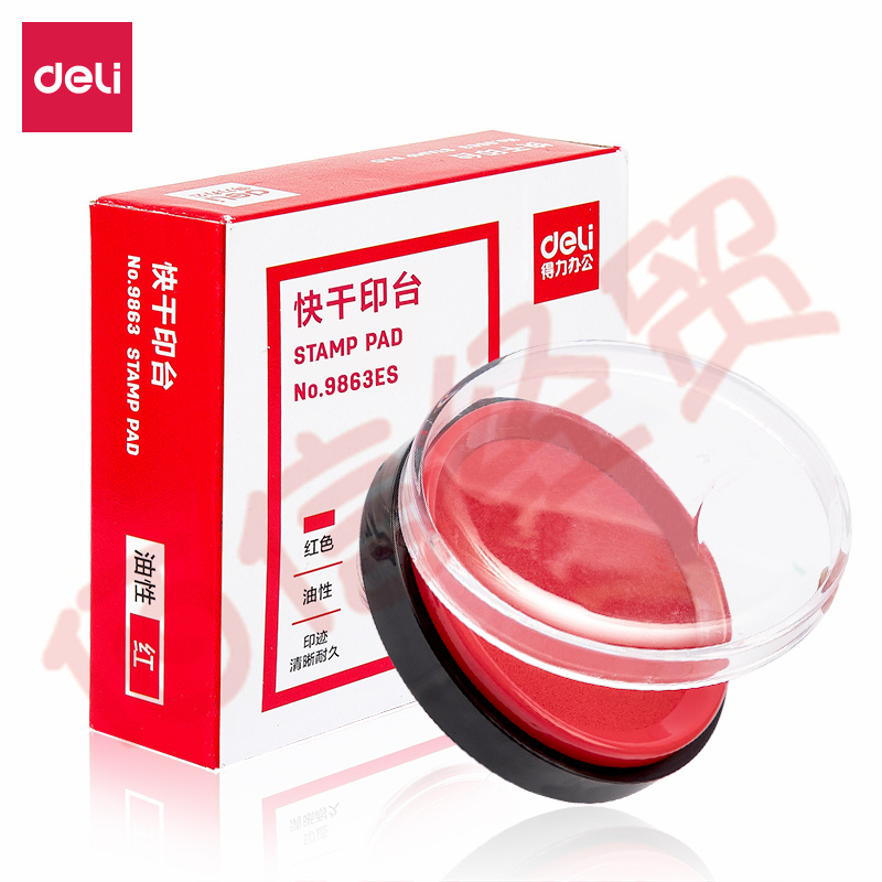 ¥8.70得力(deli)9863-φ80mm透明圓形財務快干印臺印泥 辦公用品 紅色