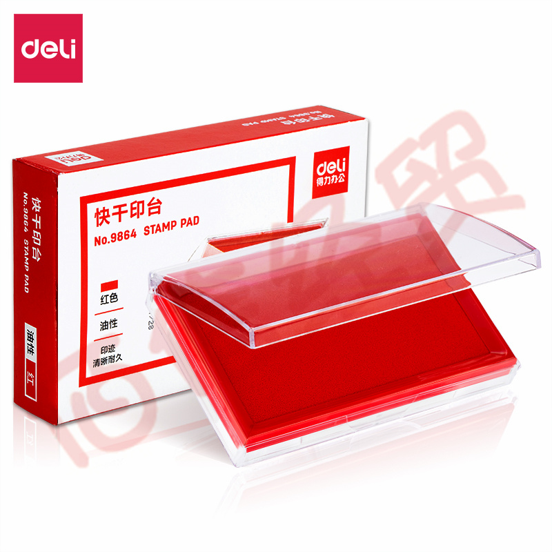 得力(deli)9864-137*88mm透明外殼方形快干印臺印泥 辦公用品 紅色 自營