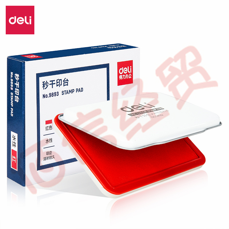得力(deli)9893-143*87mm金屬方形大號財務會計專用秒干印臺印泥 辦公用品 紅色 自營