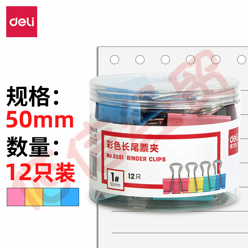 得力(deli)12只50mm彩色長尾夾票夾 1#金屬燕尾夾票據(jù)夾子 辦公用品 8551 自營
