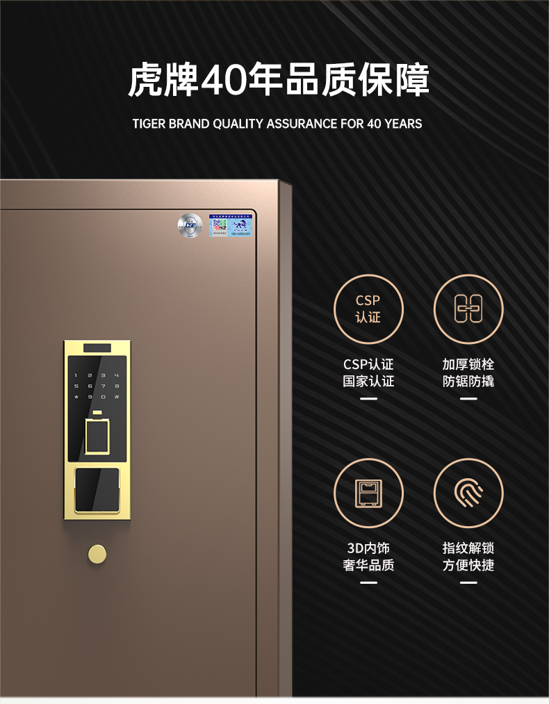 ¥8069.00虎牌保險柜家用辦公小型國標認證保險箱150cm指紋密碼全鋼防盜財務(wù)專用保密柜 尊虎系列 咖啡金