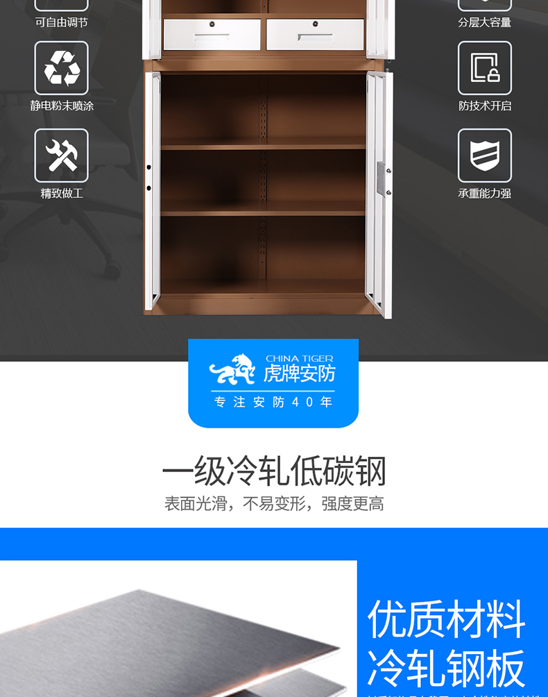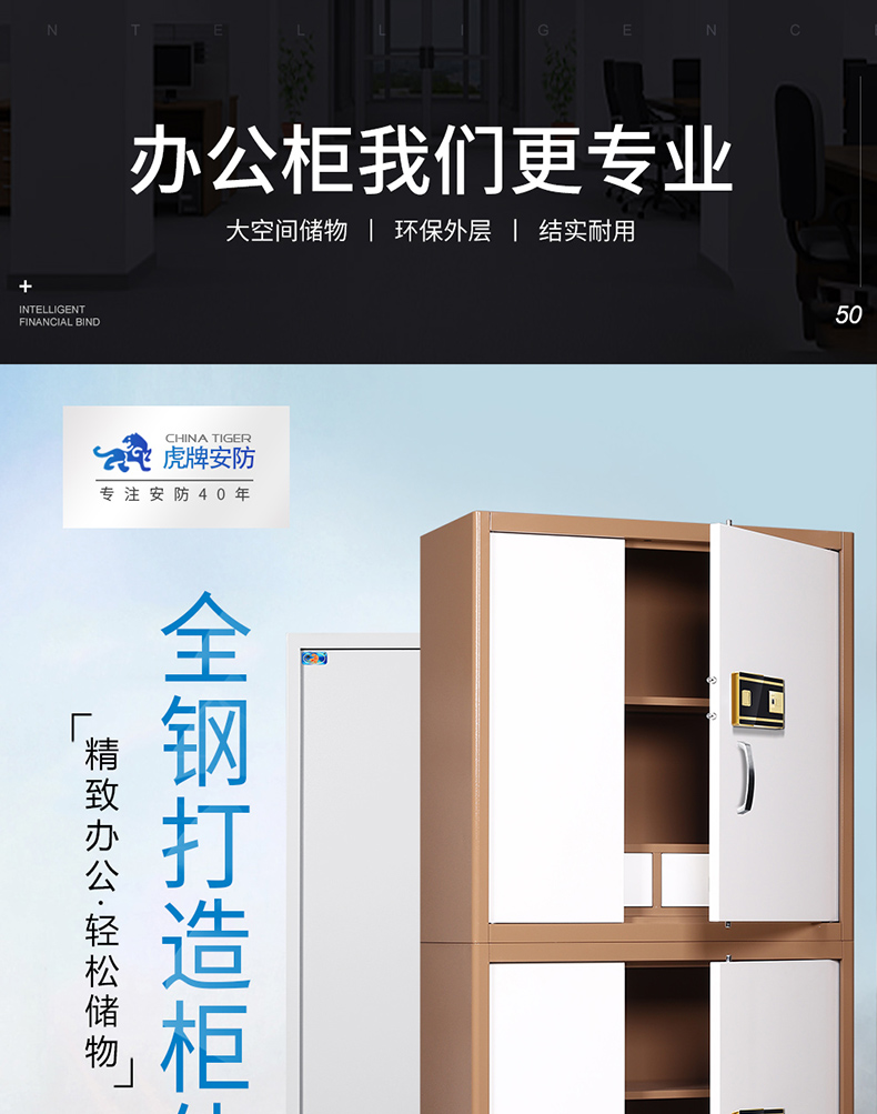 虎牌保險(xiǎn)柜180cm文件柜對(duì)開(kāi)門雙層辦公柜國(guó)寶鎖智能指紋密碼保險(xiǎn)箱保密柜 自營(yíng)