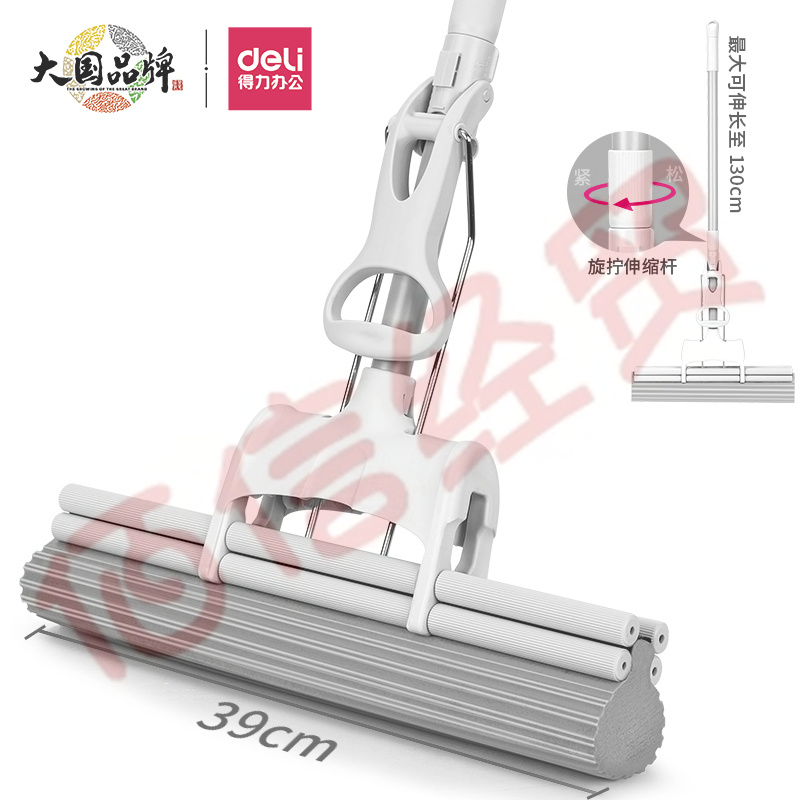 得力(deli)滾壓式膠棉拖把 加寬棉膠頭 雙排擠水滾輪無需手洗 可伸縮握桿干濕兩用 19500 自營