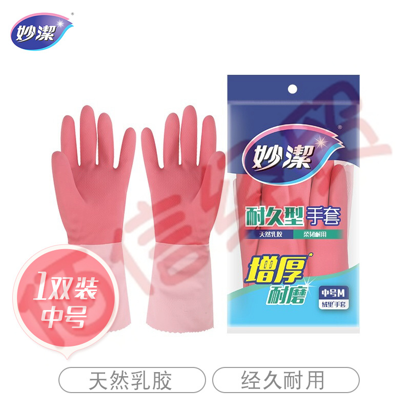 妙潔 清潔家務(wù) 橡膠手套 中號(hào) 耐久型 洗碗防水防滑(10個(gè)起售) 自營(yíng)