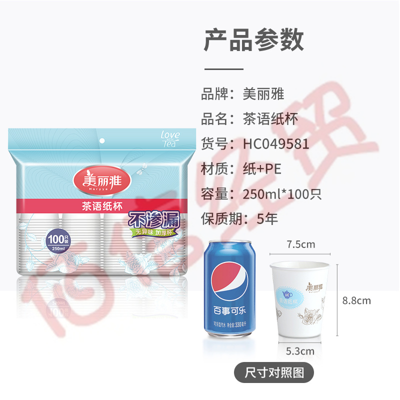 美麗雅 茶語加厚紙杯大號250ml*100只 一次性杯子耐熱不滲漏商務(wù)杯 家用水杯飲料杯果汁杯(10個起售) 自營