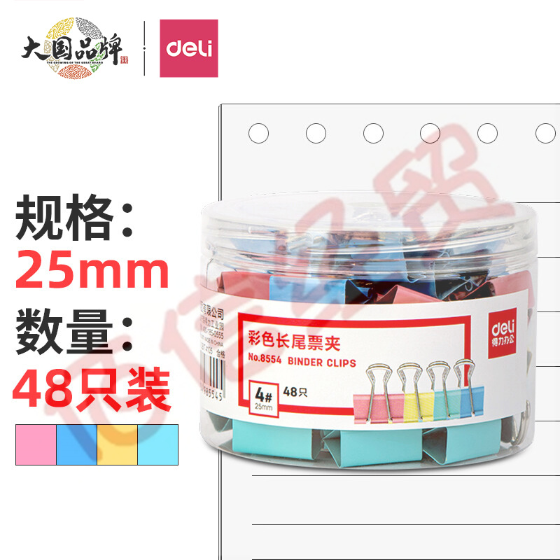 得力(deli)48只25mm彩色長(zhǎng)尾夾票夾文件夾 4#金屬燕尾夾票據(jù)夾子 辦公用品 8554 自營(yíng)