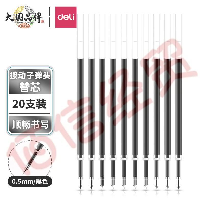 得力(deli)0.5mm按動(dòng)中性筆芯 水筆簽字筆替芯 子彈頭20支/盒黑色6906 辦公用品 自營