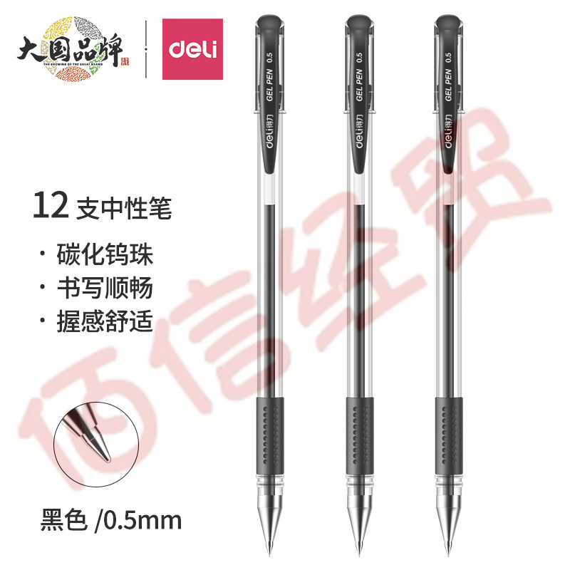 得力(deli)0.5mm經(jīng)典辦公子彈頭中性筆 水筆簽字筆黑色12支/盒6600ES 自營