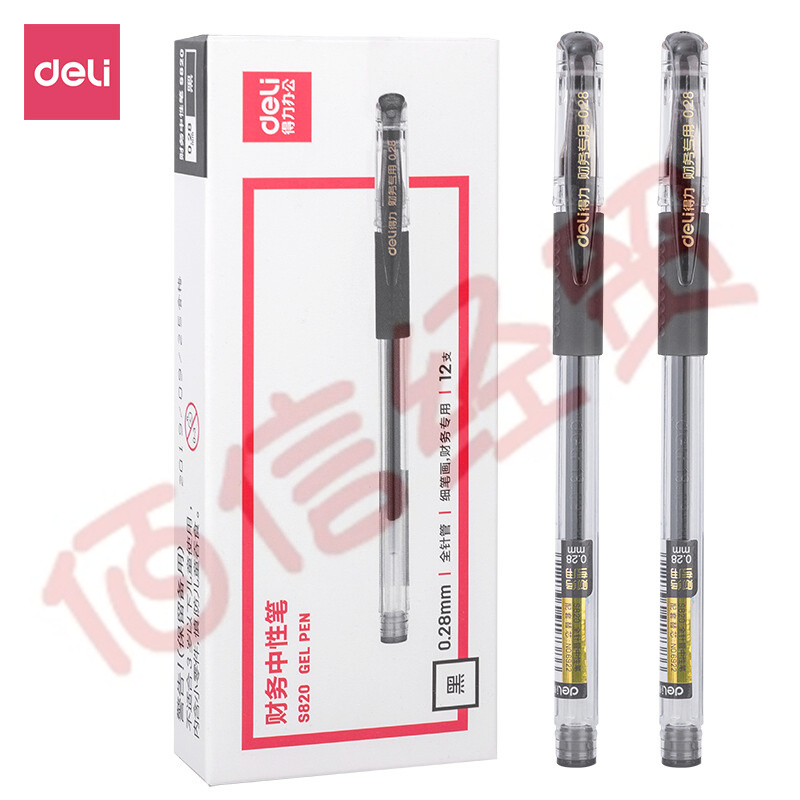 得力(deli)0.28mm財務專用中性筆 辦公用品 全針管12支盒S820 自營