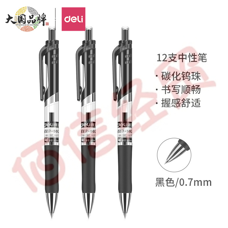 得力(deli)0.5mm黑色中性筆金屬噴漆筆 子彈頭簽字筆 12支/盒
