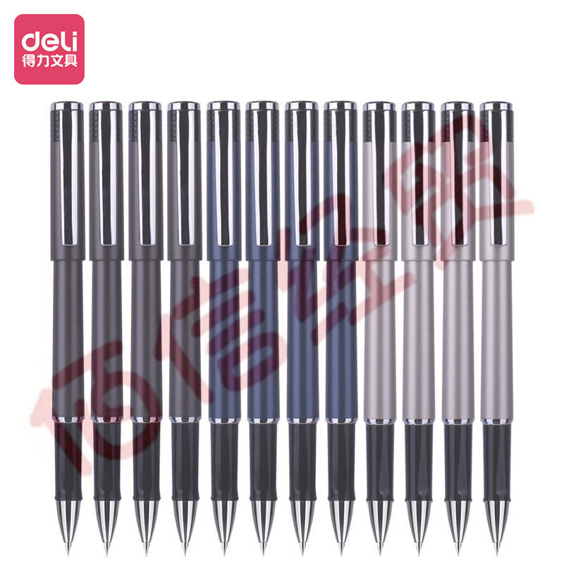 得力(deli)大容量辦公中性筆 簽字筆12支 0.5mm子彈頭黑色 自營