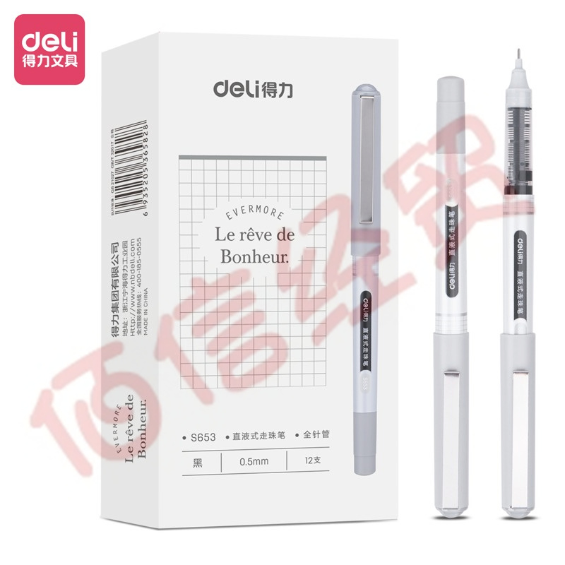 得力(deli)0.5mm全針管直液走珠簽字筆學(xué)生考試中性筆 12支/盒DL-S653 自營