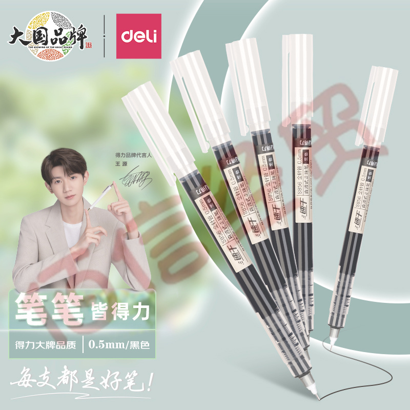 得力(deli)直液筆簽字筆 0.5mm全針管中性筆 商務辦公學生水筆走珠筆 黑色 12支/盒S856 自營