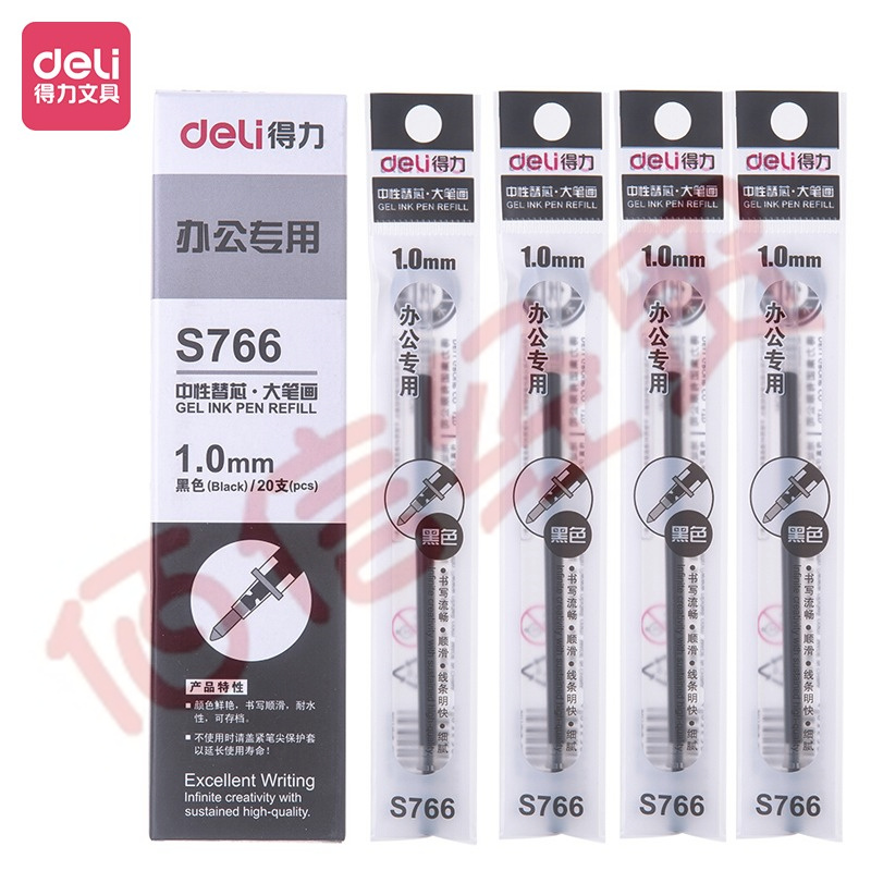 得力(deli)1.0mm黑色中性筆簽字筆替芯 子彈頭20支/盒 自營
