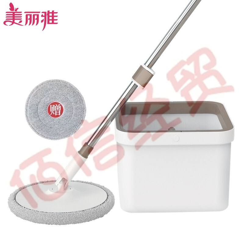 美麗雅 旋轉(zhuǎn)拖把桶免手洗清污分離拖把干濕兩用家用木地板墩布拖布懶人地拖 共2張拖布 自營