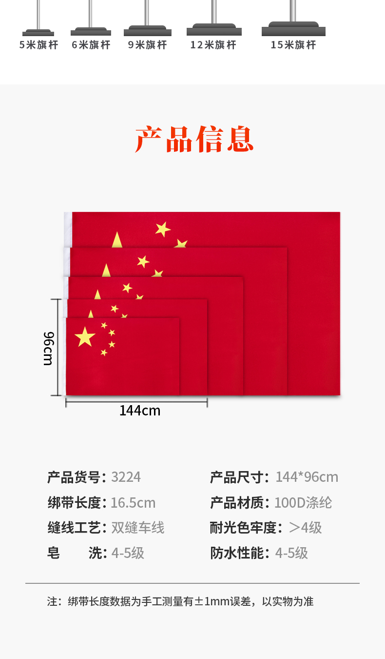 得力(deli)4號(hào)國(guó)旗/五星紅旗(96*144cm) 3224 自營(yíng)