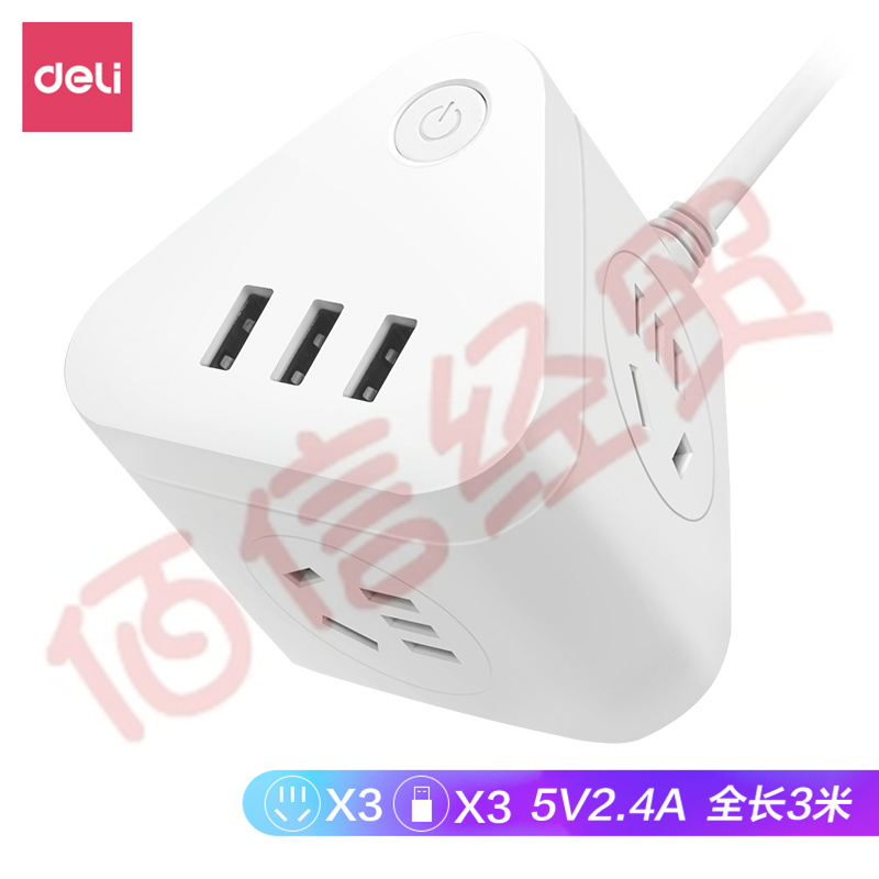 得力(deli)三角魔方插座 智能USB插座 插排/插線板/接線板/排插 3USB接口+3組合孔 總控 全長3米 18321-03 自營