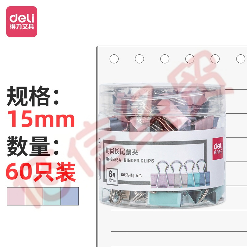 得力(deli) 長(zhǎng)尾夾 8556A混色/60只(15mm) 自營(yíng)