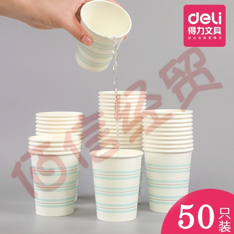 得力(deli) 19203一次性紙杯 加厚型中大號紙杯子50只/包 辦公家用紙杯(一件40包) 自營