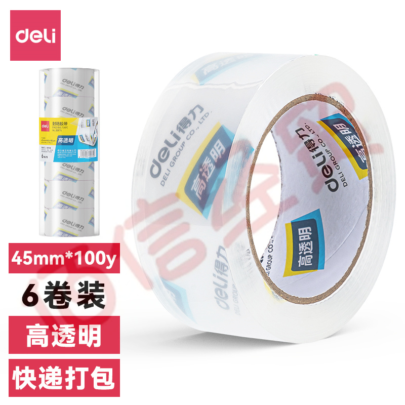 得力(deli) 高品質(zhì)高透明封箱膠帶打包膠帶 45mm*100y*50um 6卷/筒 辦公用品 30175 自營
