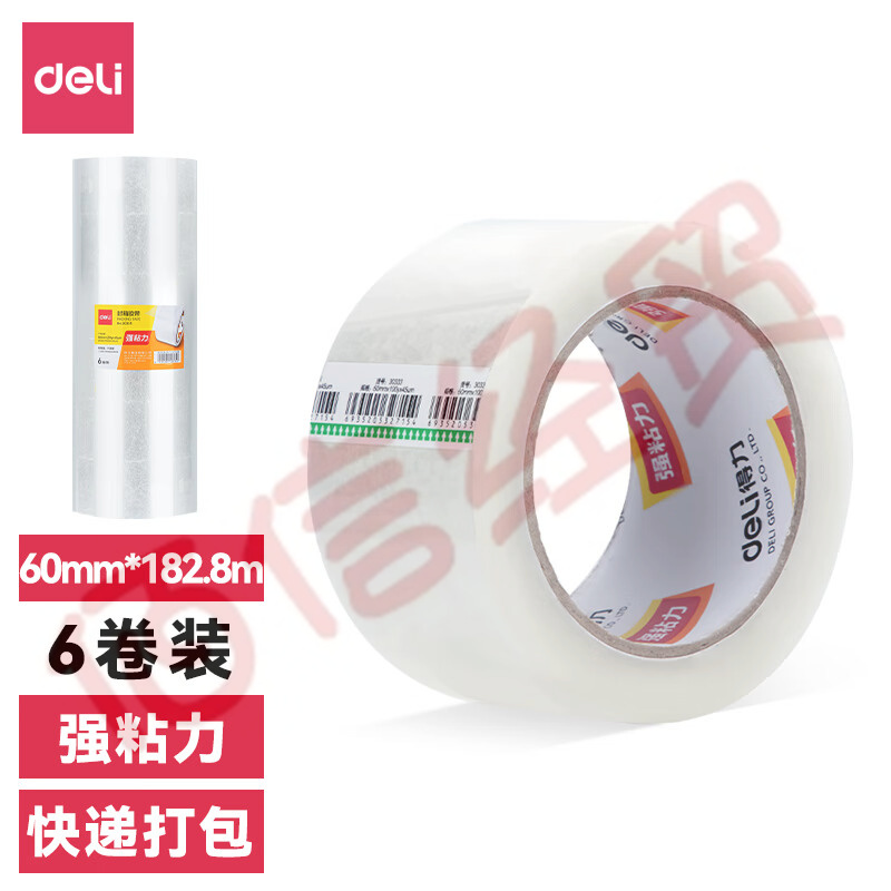 得力(deli)高品質(zhì)透明封箱膠帶/打包膠帶 60mm*200y*45um(6卷/筒)(普透)30335 自營
