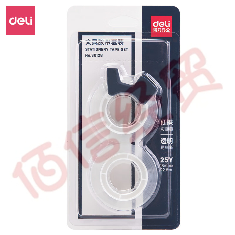 得力(deli) 易撕透明高粘文具膠帶/小膠帶 18mm*25Y 2卷套裝 帶簡易膠帶切割器 辦公用品 30128 自營