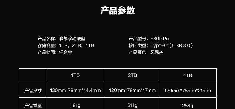 ¥338.50聯(lián)想(Lenovo) F309 4T移動(dòng)硬盤usb3.0 高速移動(dòng)硬盤4TB 灰色 4T