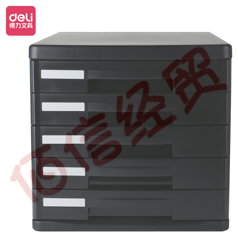 得力(deli)5層桌面文件柜 A4拉手資料收納柜 帶索引標(biāo)簽 辦公用品 黑色9773A 自營(yíng)