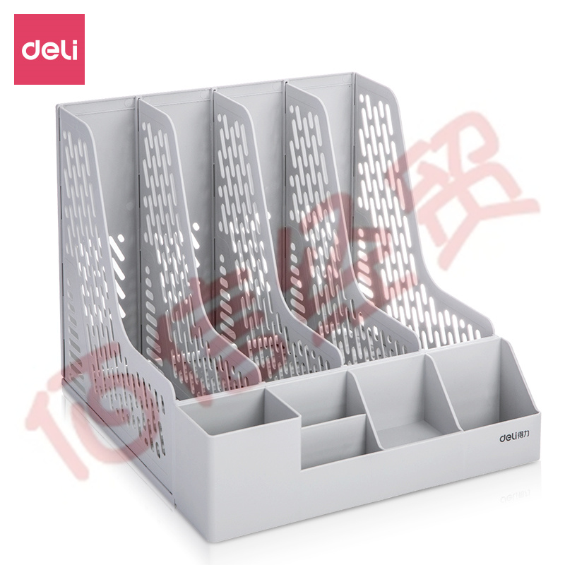 得力(deli)四聯(lián)帶筆筒收納桌面文件框 辦公室桌面多層資料架子 多功能鏤空文件架 灰色78981 自營