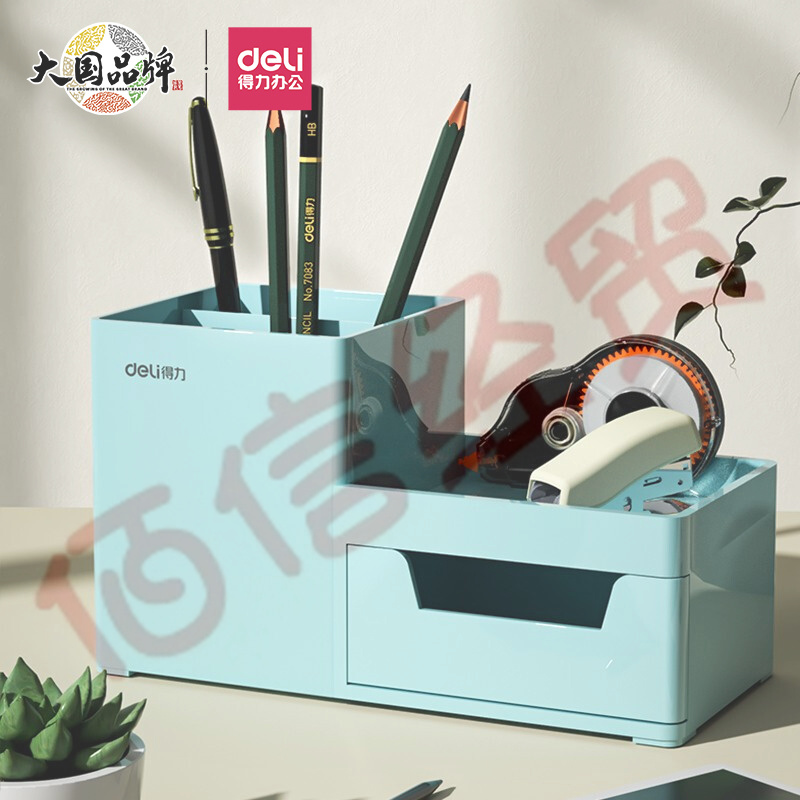 得力(deli)居家文具收納盒 小物件桌面收納盒筆筒 首飾收納盒 桌面儲物盒 美化收納盒 淺藍8907 自營