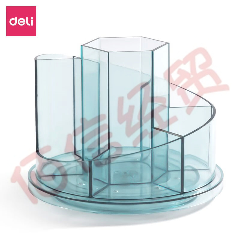 得力(deli)旋轉(zhuǎn)筆筒辦公室桌面收納盒筆桶學(xué)生桌面多功能創(chuàng)意透明筆筒 【8943】圓形旋轉(zhuǎn)至透明藍(lán) 自營