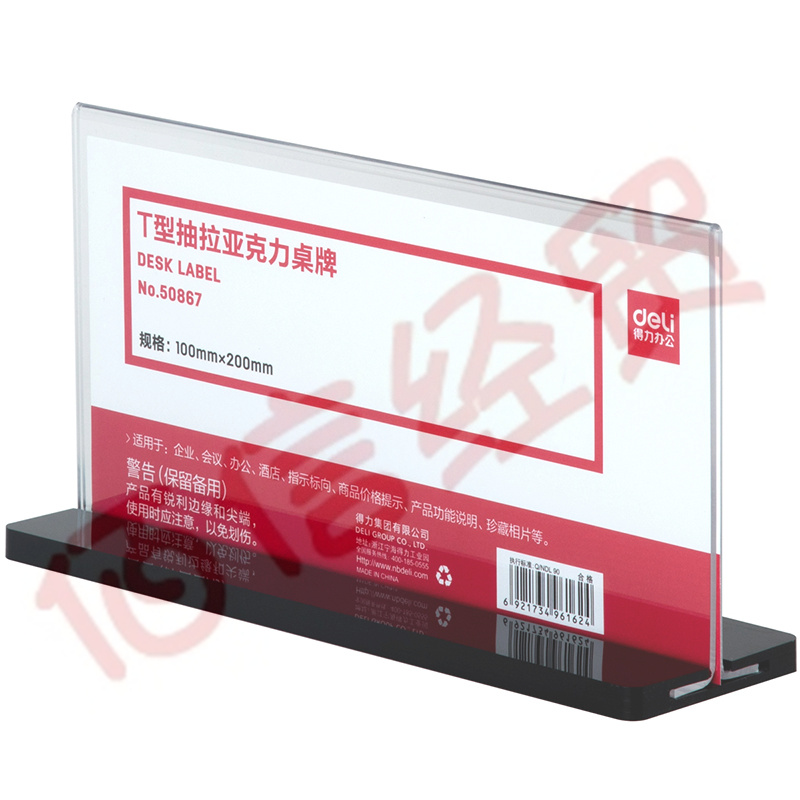 得力(deli) 亞克力T型臺卡臺簽臺牌桌簽雙面透明桌牌展示牌酒水牌 小號(100*200mm) 50867 自營