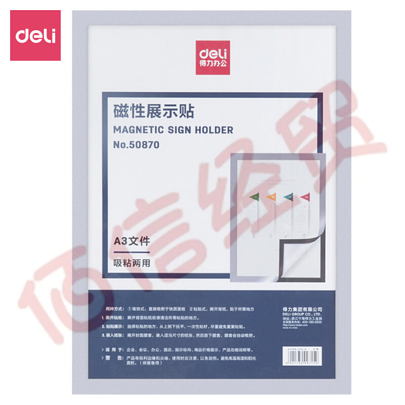得力(deli)50870 A3磁性展示貼 營業(yè)執(zhí)照正本保護套 公告欄通知貼紙 銀色 自營
