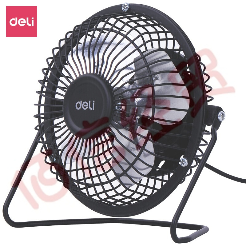 得力 (deli) 3680 4寸鐵藝USB直供電迷你風扇(黑)(臺) 自營