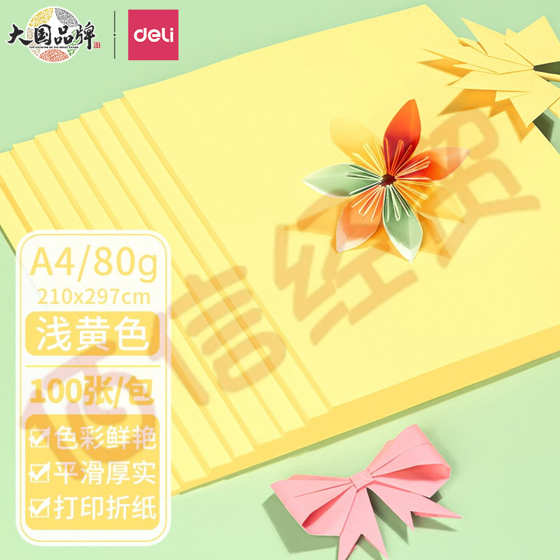 得力(deli)A4 80g淺黃色復(fù)印紙 彩色打印紙 兒童手工折紙剪紙彩紙 非硬卡紙 100張/包 7757 自營(yíng)