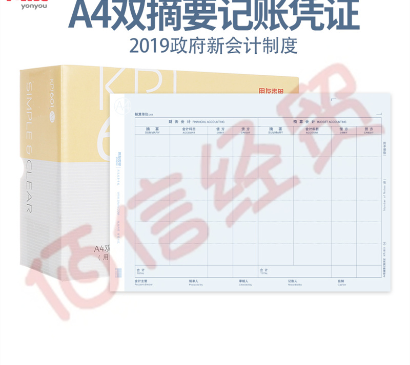 西瑪用友A4雙摘要記賬憑證打印紙 行政事業(yè)單位政府新會計制度 財務&預算會計雙分錄KPJ601 自營