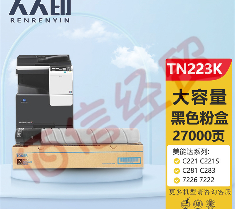 人人印 美能達(dá)TN223黑色墨粉盒 柯尼卡美能達(dá)TN224 C256 C266 C7222 C7226墨盒 柯美C226碳粉 (大容量) 自營(yíng)