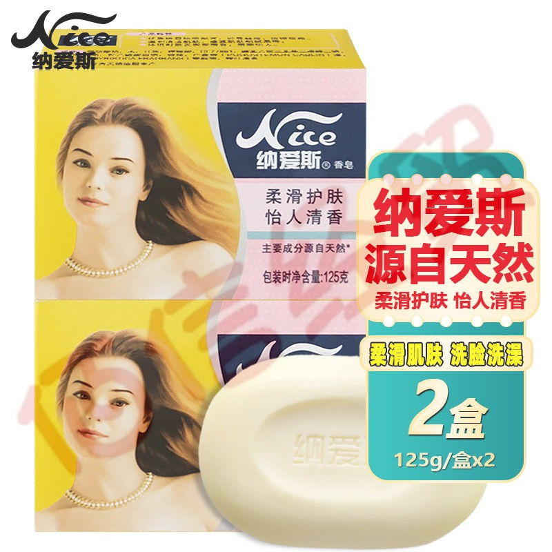 納愛斯盒裝香皂(怡人清香 柔滑護(hù)膚)女士沐浴皂洗澡洗臉清潔潔膚潔凈肌膚 125g×2塊(18組=36塊---整箱售) 自營