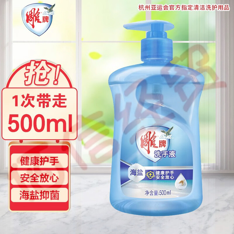 雕牌海鹽洗手液500ml清香家用便攜健康護(hù)手--單瓶價--每箱24瓶(整箱售) 自營