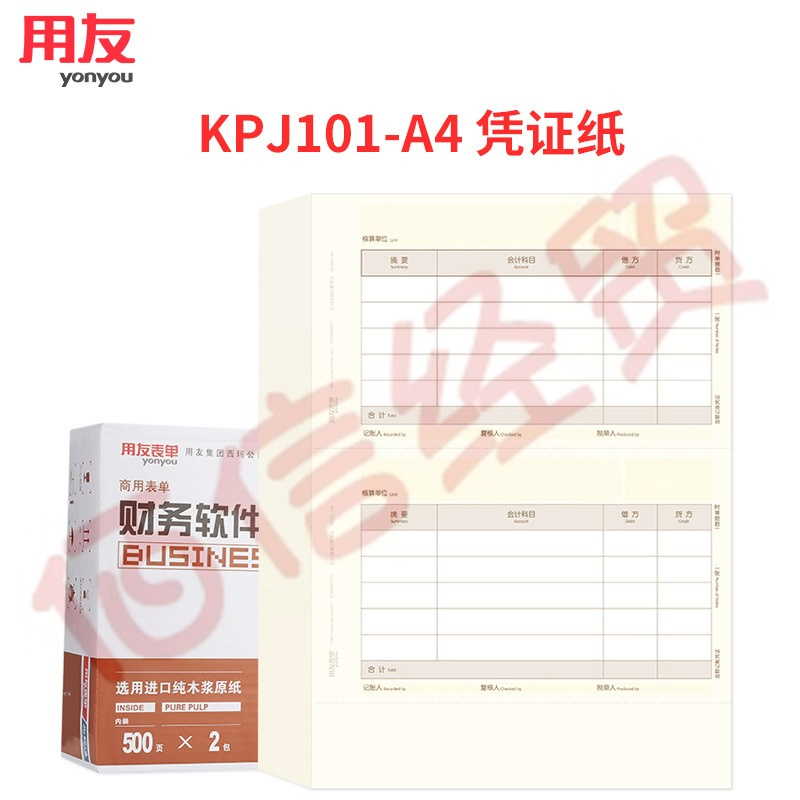 西瑪用友憑證紙KPJ101-A4 210*127 A4規(guī)格 正A4金額記賬憑證 自營